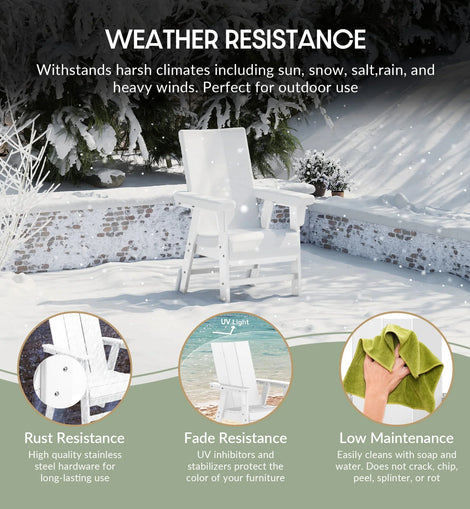 The WestinTrends Ashore Outdoor Patio Dining Chair combines modern Adirondack design with durable HDPE plastic construction for lasting outdoor use. Its sleek white finish resists weather and fading, ensuring easy maintenance and prolonged aesthetic appeal. Ergonomically shaped for comfort, this chair enhances any patio setting with both style and practicality, making it ideal for outdoor dining and relaxation.