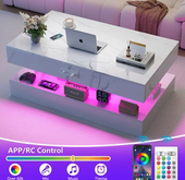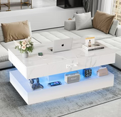 The PAPROOS LED White Coffee Table combines modern design with practical storage solutions. Its 47-inch high-gloss surface with a striking marbling print adds a sophisticated touch to your living room. Featuring two spacious drawers and an open display shelf, this two-tiered rectangular table offers ample room to organize essentials while showcasing décor. The integrated LED lighting enhances ambiance, making it a stylish and functional centerpiece for contemporary living spaces.