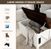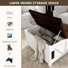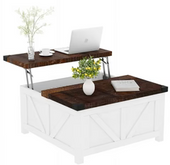 The ChVans 35.6" Square Lift Top Coffee Table combines farmhouse charm with modern functionality. Featuring a spacious hidden compartment beneath the lift-top surface, it offers ample storage to keep your living room or home office organized. Integrated charging ports provide convenient power access for your devices, enhancing usability without clutter. Crafted from durable wood, this coffee table delivers both aesthetic appeal and practical convenience, making it an essential centerpiece for your space.